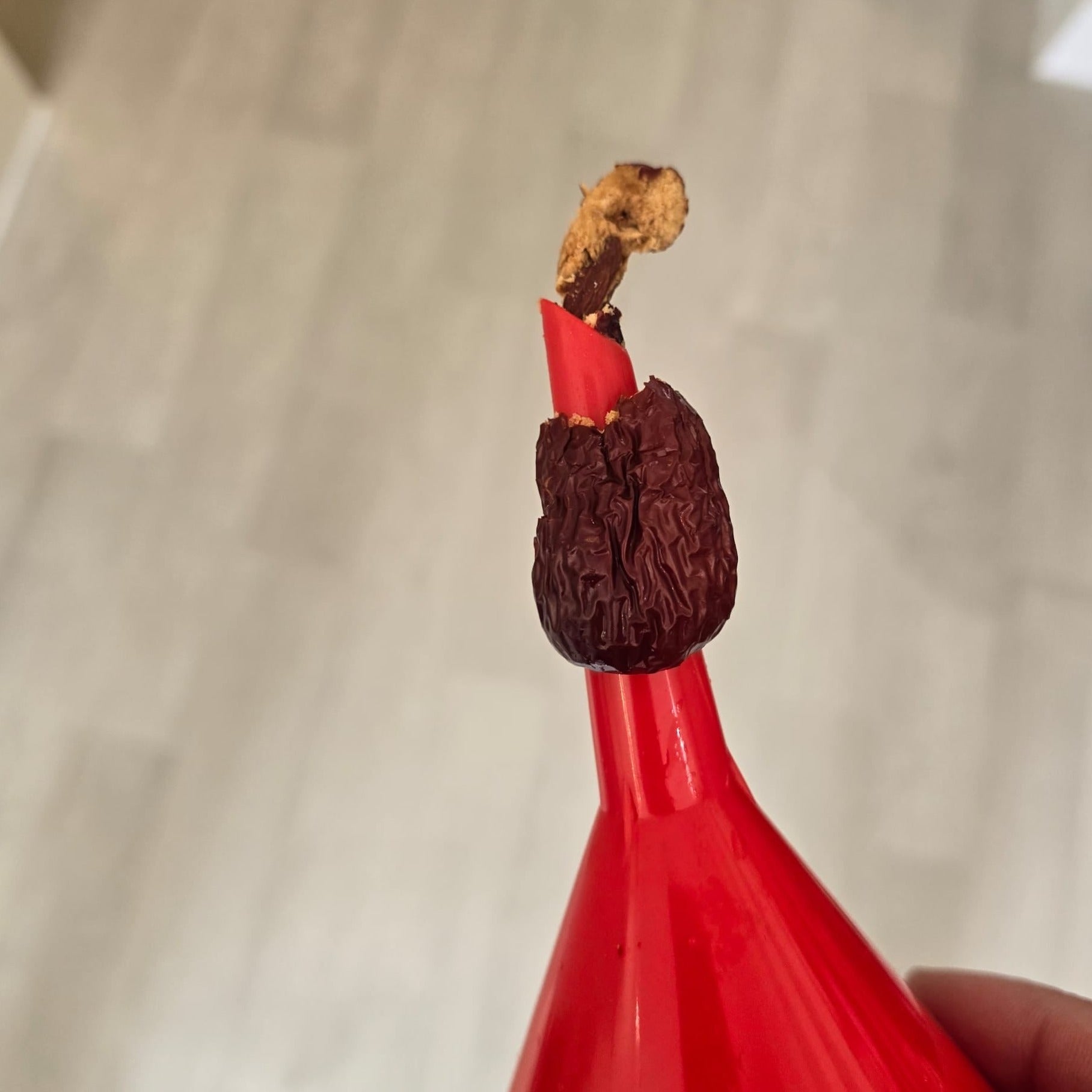 Tips: 平時紅棗去核都好麻煩,用刀用手都係搞唔好。上網睇左,有一個方法幾好, 就係將紅棗嘅頭部對準漏斗嘅尖端 (請參照附圖),將紅棗一路轉一路禁落去,禁到盡頭就將紅棗掹出嚟,得左。